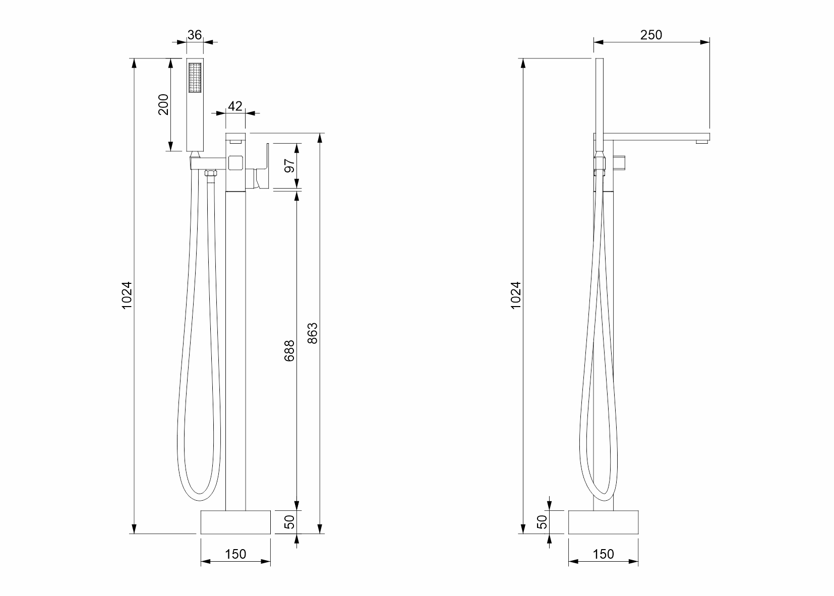 Vychutnejte si moderní styl a funkčnost prvotřídní volně stojící vanové baterie AA.01 BLACK. Je to perfektní řešení pro luxusní a relaxační zážitek z koupání. Díky elegantnímu designu, čistým liniím a třpytivému vzhledu dokonale zapadne do vaší koupelny. Ruční sprcha je vybavena 150 cm dlouhou sprchovou hadicí pro opláchnutí vany. Hadice a kohoutek jsou vyrobeny z prvotřídní nerezavějící oceli, díky čemuž je celá sada odolná a zajišťuje dlouhodobé používání.