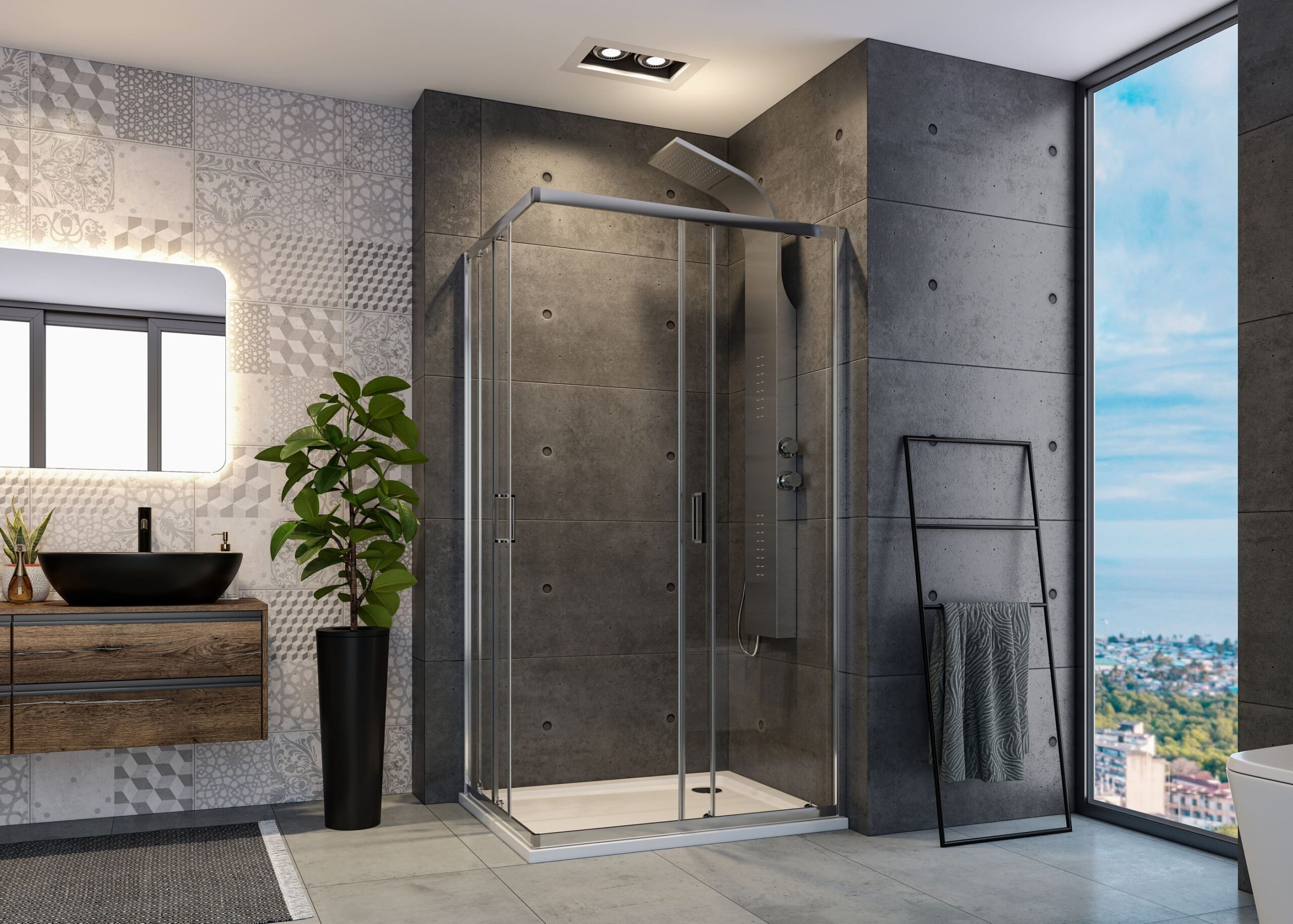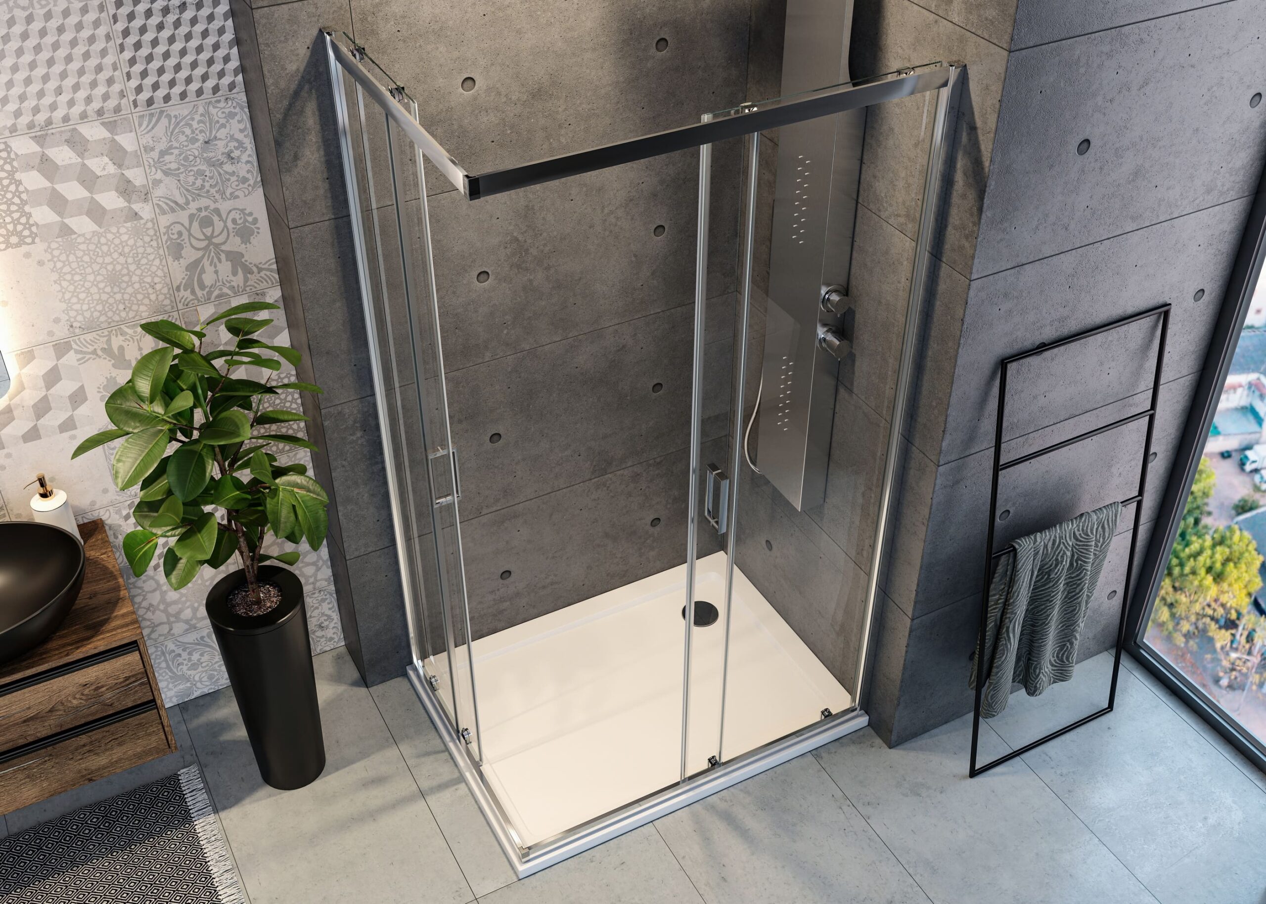 Série sprchových koutů ABILITY nabízí elegantní design s 6 mm čirým nebo matným sklem, doplněným o hliníkové chromové profily, které zdůrazňují její moderní vzhled. Posuvné dveře na kvalitních ložiskových pojezdech zajišťují plynulý a tichý pohyb, přičemž šetří prostor v koupelně. Série je dostupná v různých rozměrech a umožňuje snadnou instalaci na vaničku nebo přímo na podlahu. ABILITY je ideálním řešením pro stylové a praktické koupelny.