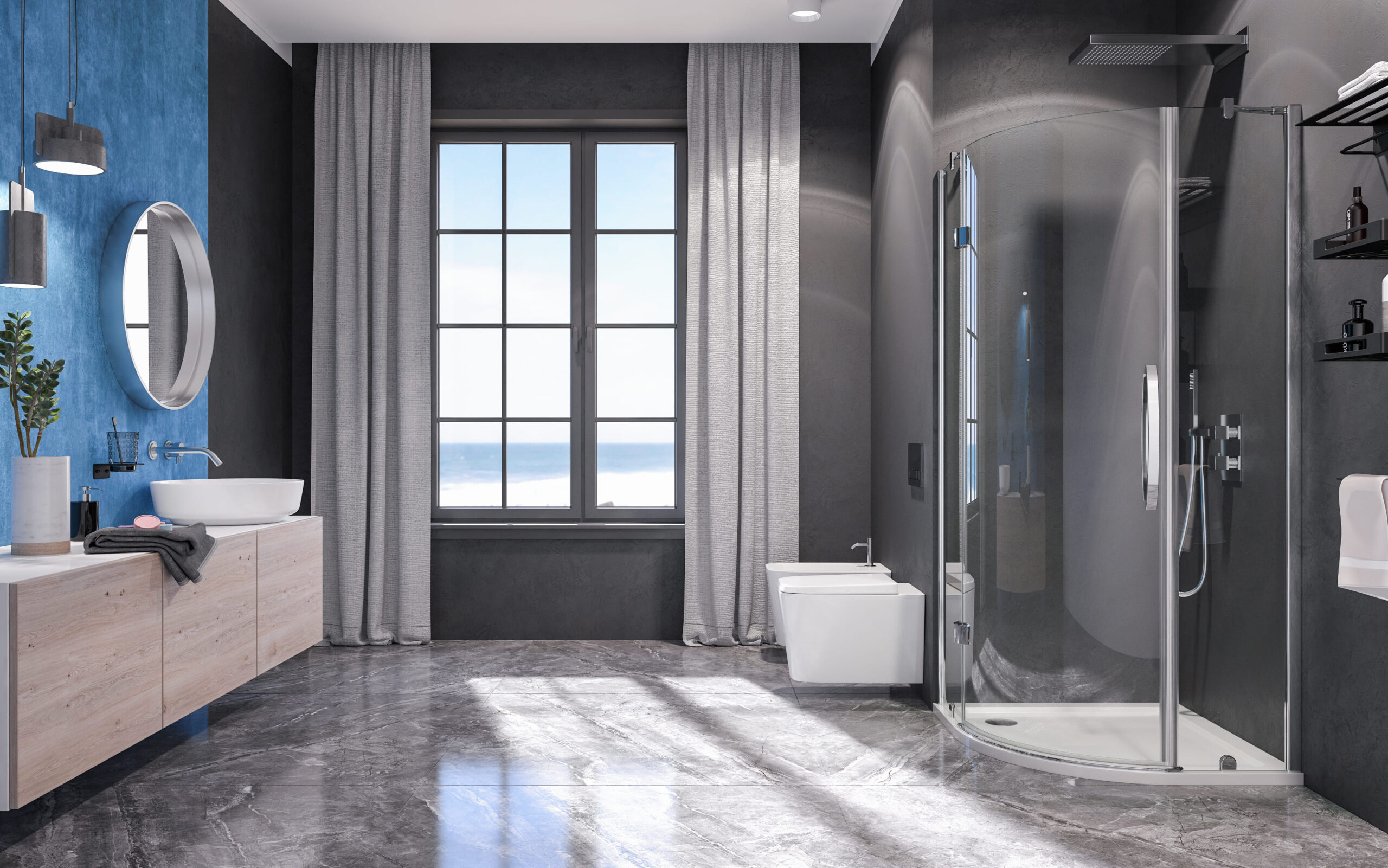 Sprchový kout obloukový s jedněmi otevíracími dveřmi