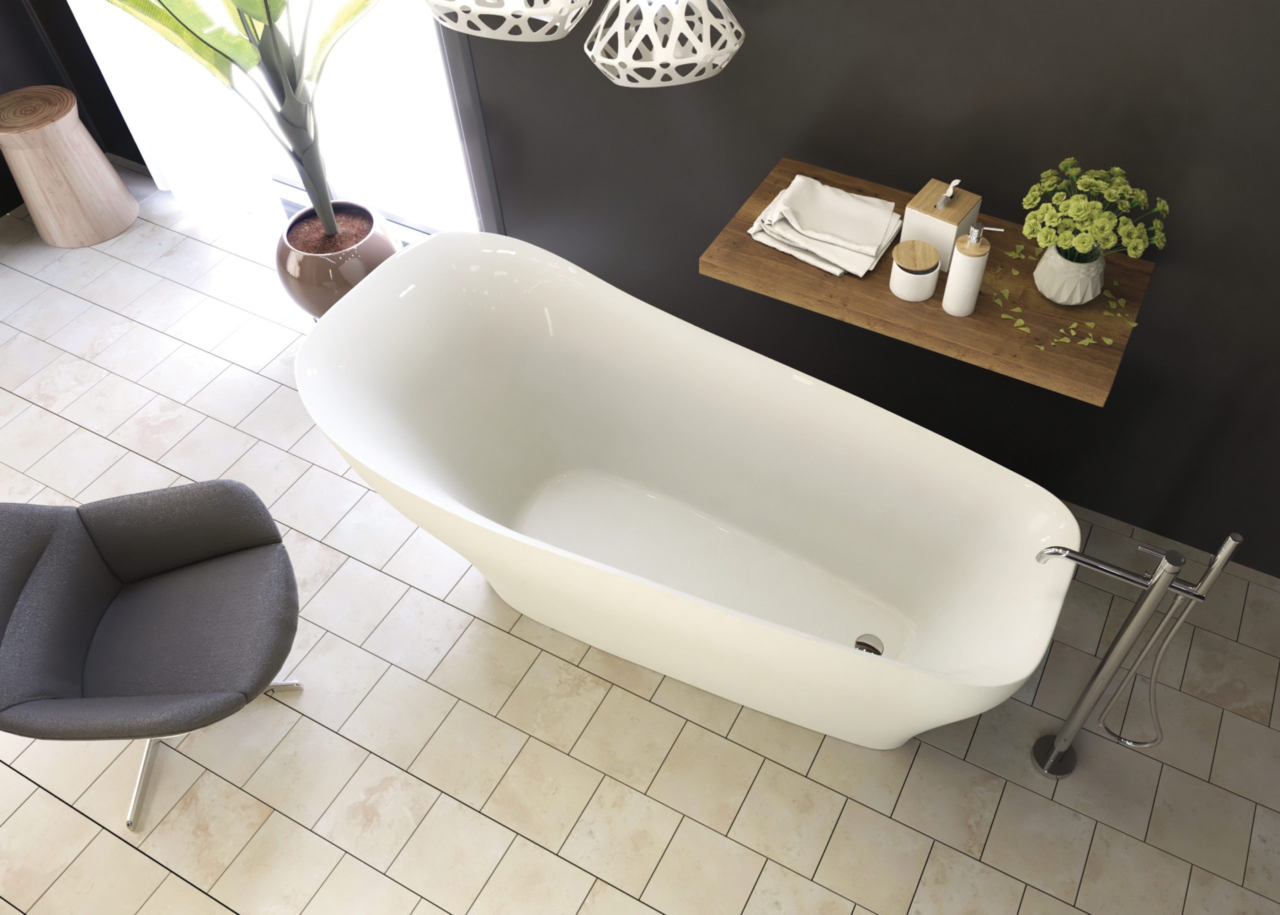 Vany z akrylátu jsou lehké, ale pevné, plně probarvené v celé tloušťce. Povrch je lesklý, stálobarevný, neporézní, má vysokou povrchovou pevnost, chemickou odolnost a je příjemný na dotek. Pyšní se bohatým vnitřním prostorem a dodají originální jedinečný vzhled každé koupelně. Volně stojící vany, ať jsou umístěny v prostoru, nebo u stěny koupelny, jsou v každém případě dominantou koupelny. Žádné zídky, žádné čelní a boční panely, jen čisté linie a nádherné tvary.