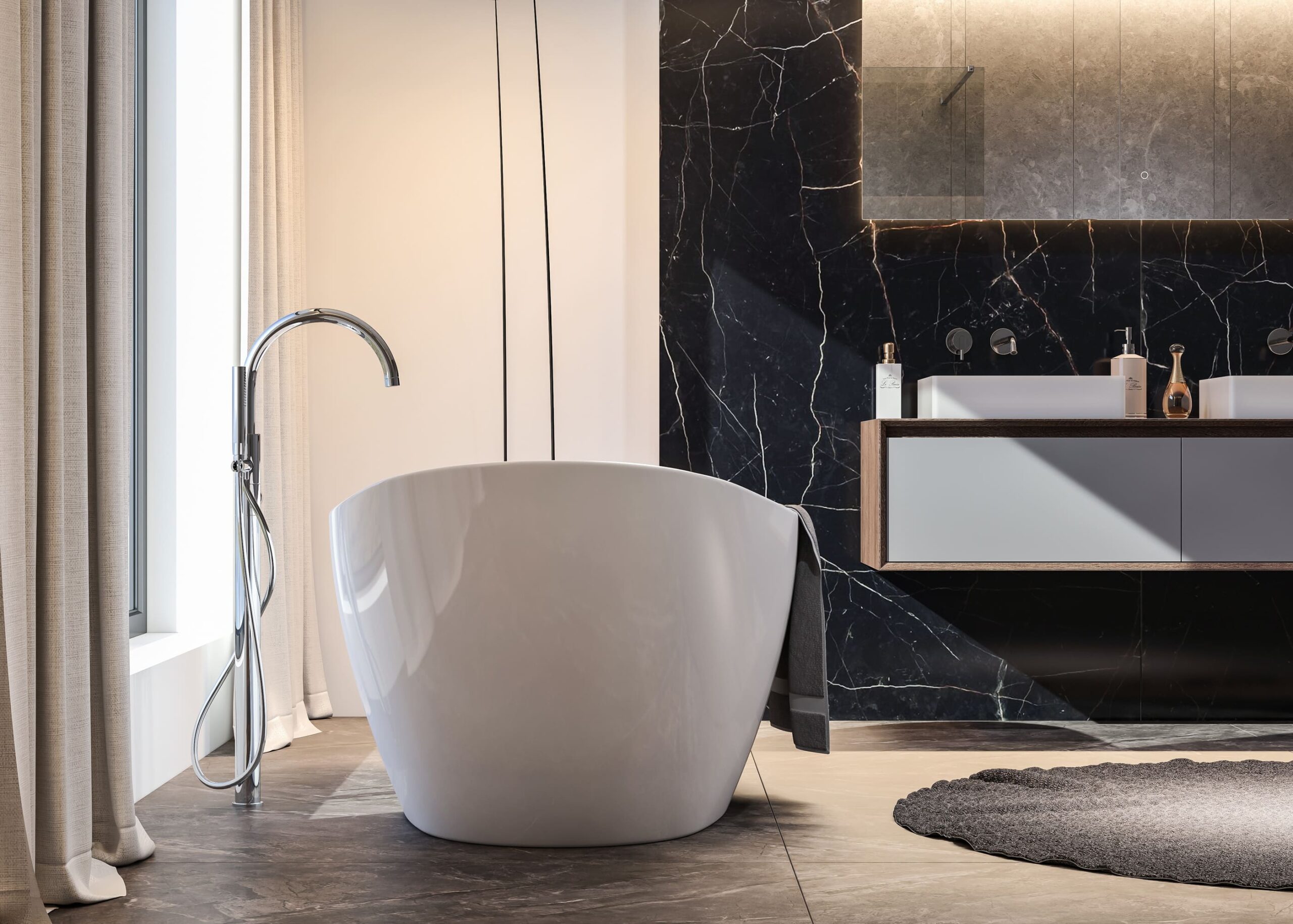 Vany z akrylátu jsou lehké, ale pevné, plně probarvené v celé tloušťce. Povrch je lesklý, stálobarevný, neporézní, má vysokou povrchovou pevnost, chemickou odolnost a je příjemný na dotek. Pyšní se bohatým vnitřním prostorem a dodají originální jedinečný vzhled každé koupelně. Volně stojící vany, ať jsou umístěny v prostoru, nebo u stěny koupelny, jsou v každém případě dominantou koupelny. Žádné zídky, žádné čelní a boční panely, jen čisté linie a nádherné tvary.