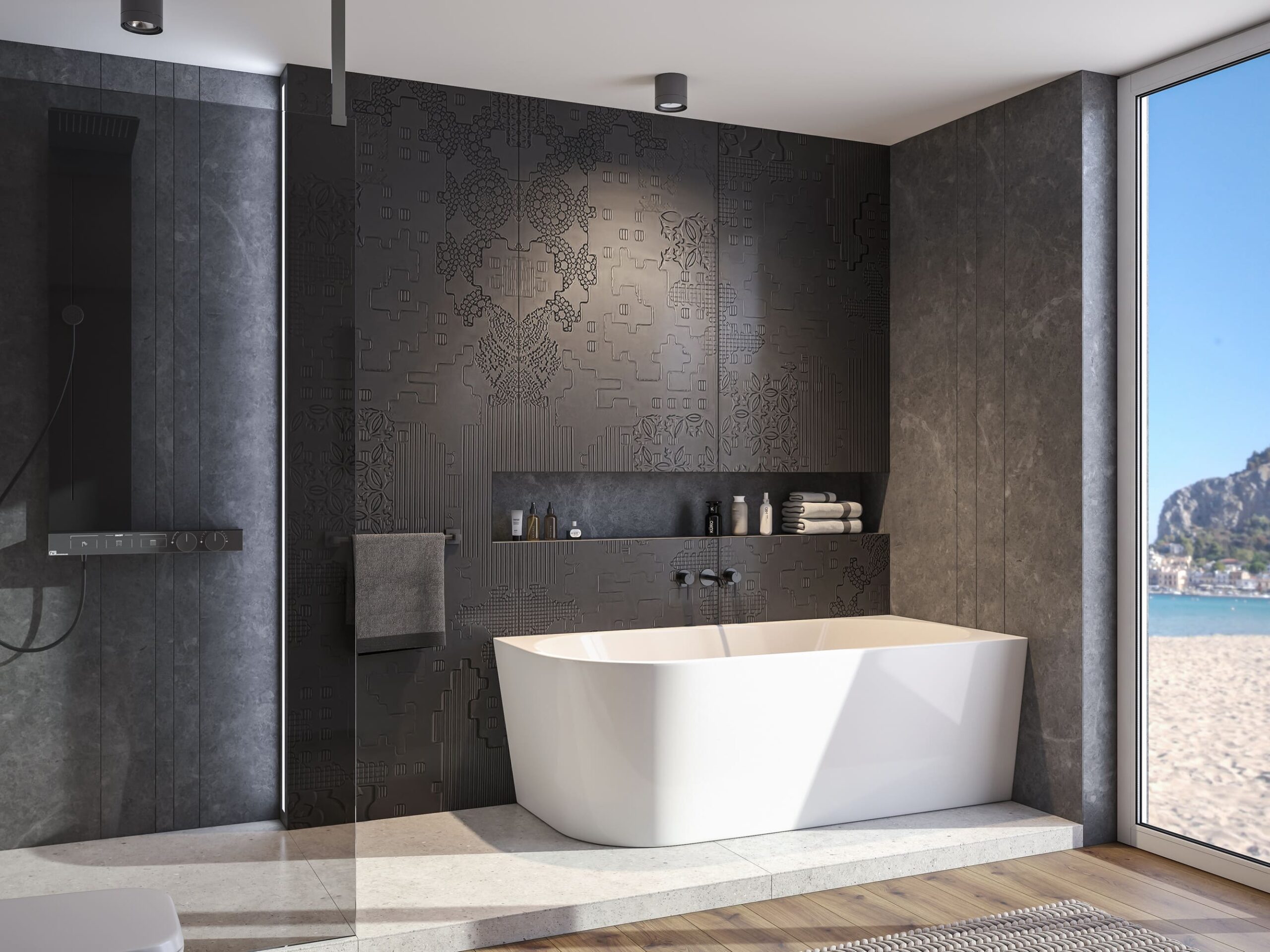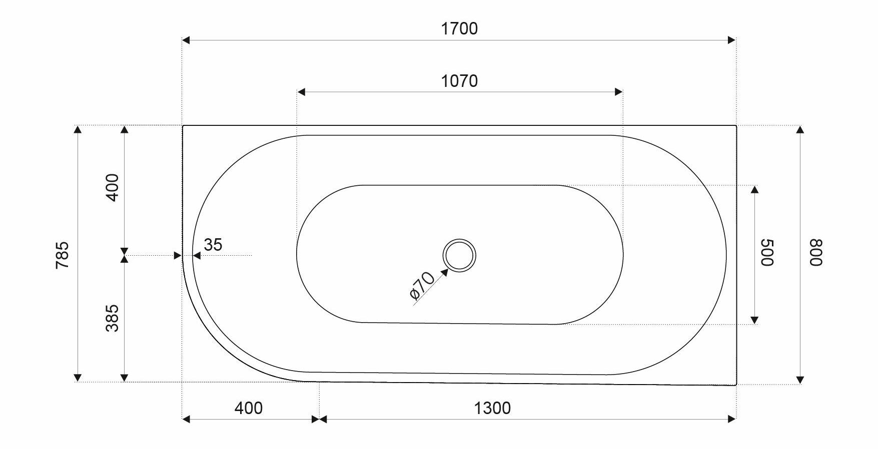 Vana s asymetrickým tvarem (obdélník se zaobleným rohem), která může být umístěna i ve volném prostoru koupelny, nejen v jejím rohu. Obdélníkový tvar vany na jedné straně se zaobleným rohem ušetří vnější prostor bez omezení vnitřního pohodlí.