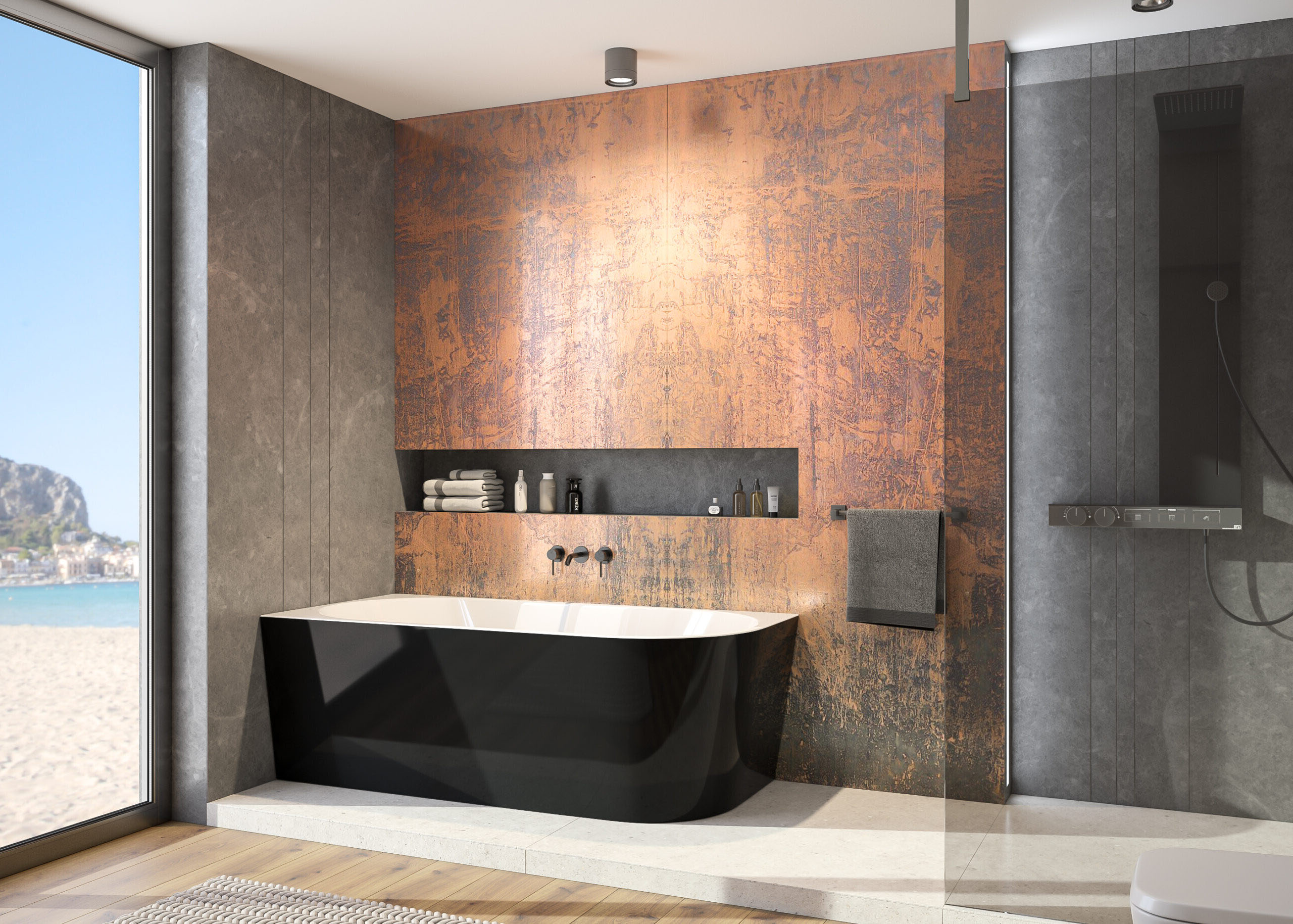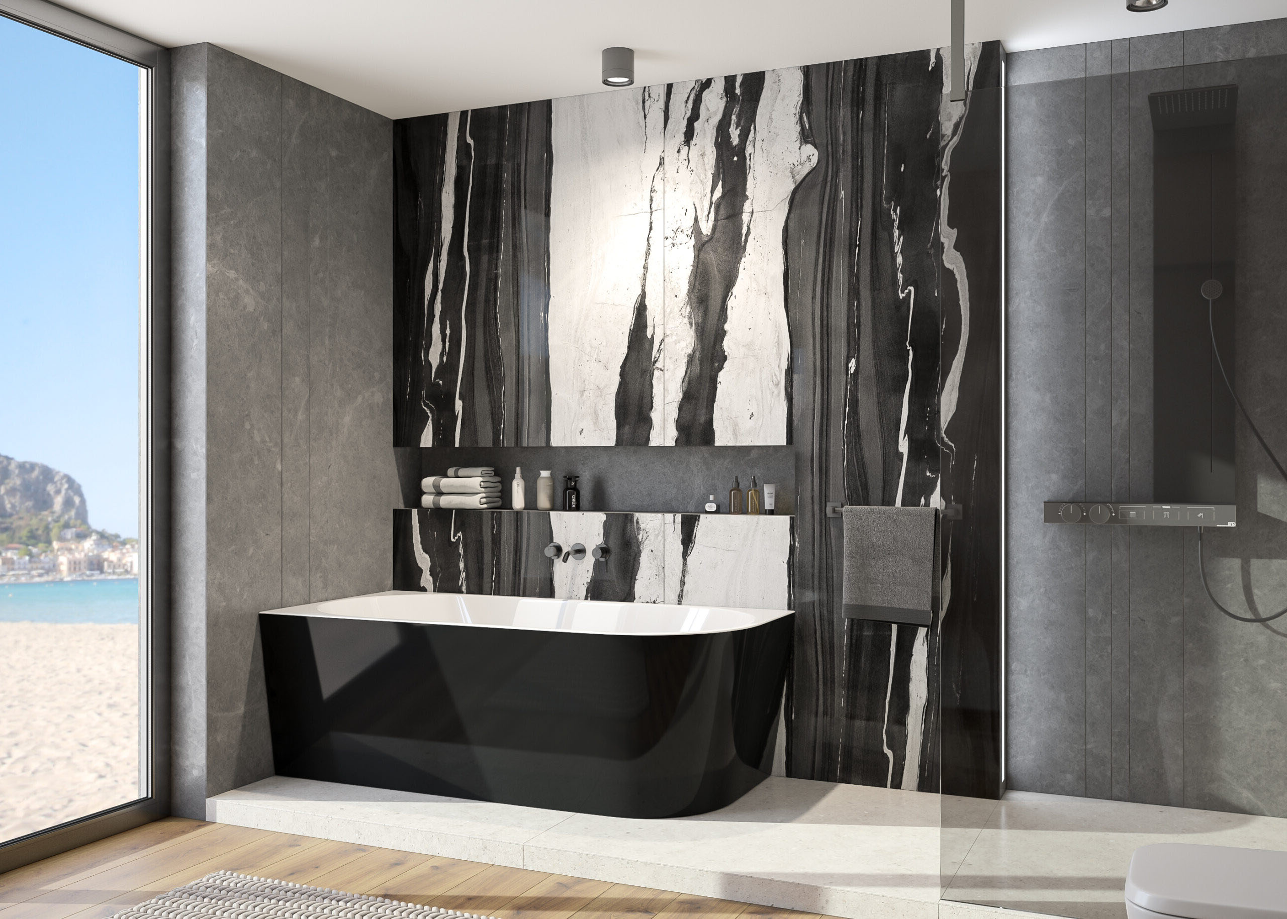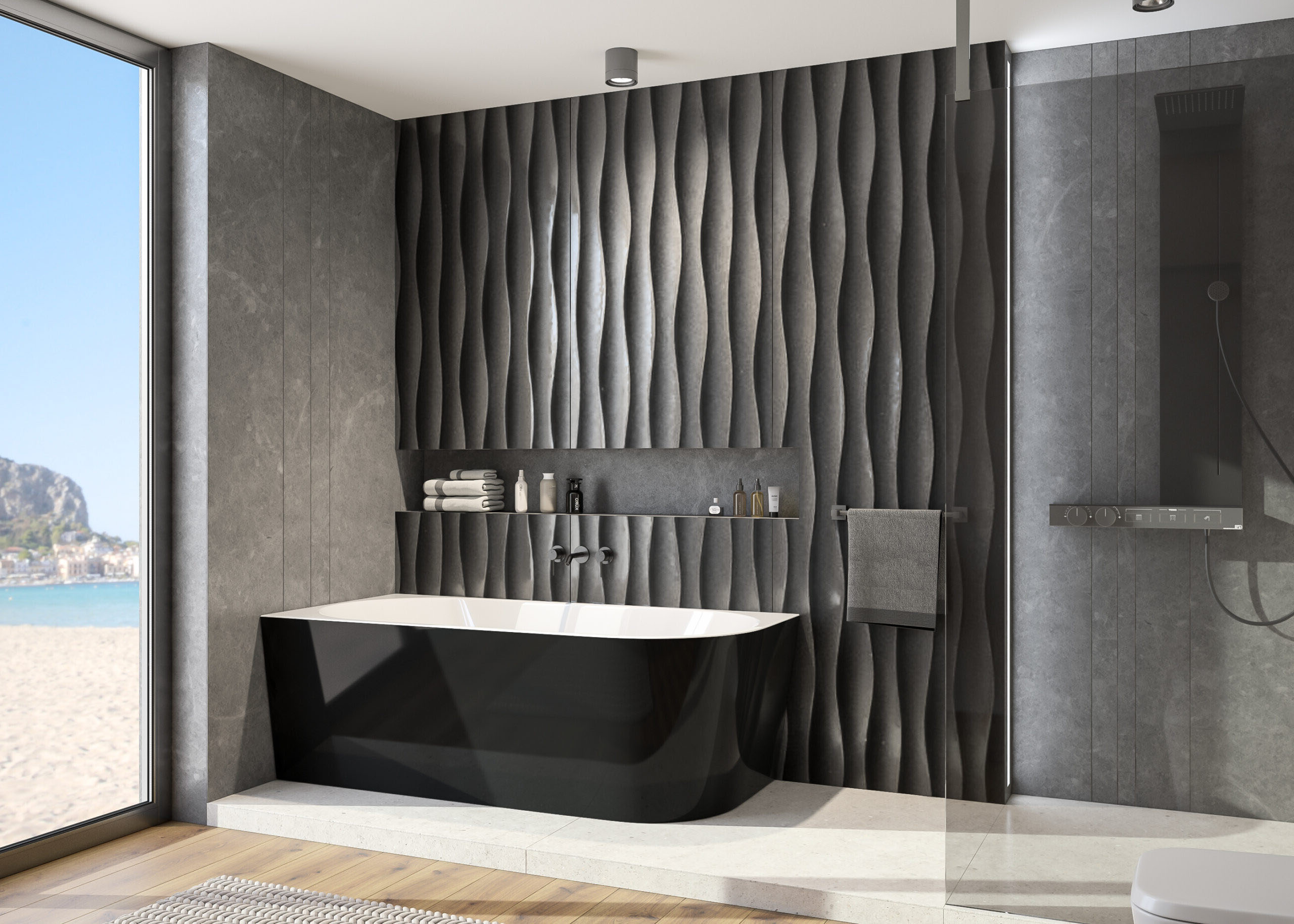 Vana s asymetrickým tvarem (obdélník se zaobleným rohem), která může být umístěna i ve volném prostoru koupelny, nejen v jejím rohu. Obdélníkový tvar vany na jedné straně se zaobleným rohem ušetří vnější prostor bez omezení vnitřního pohodlí.