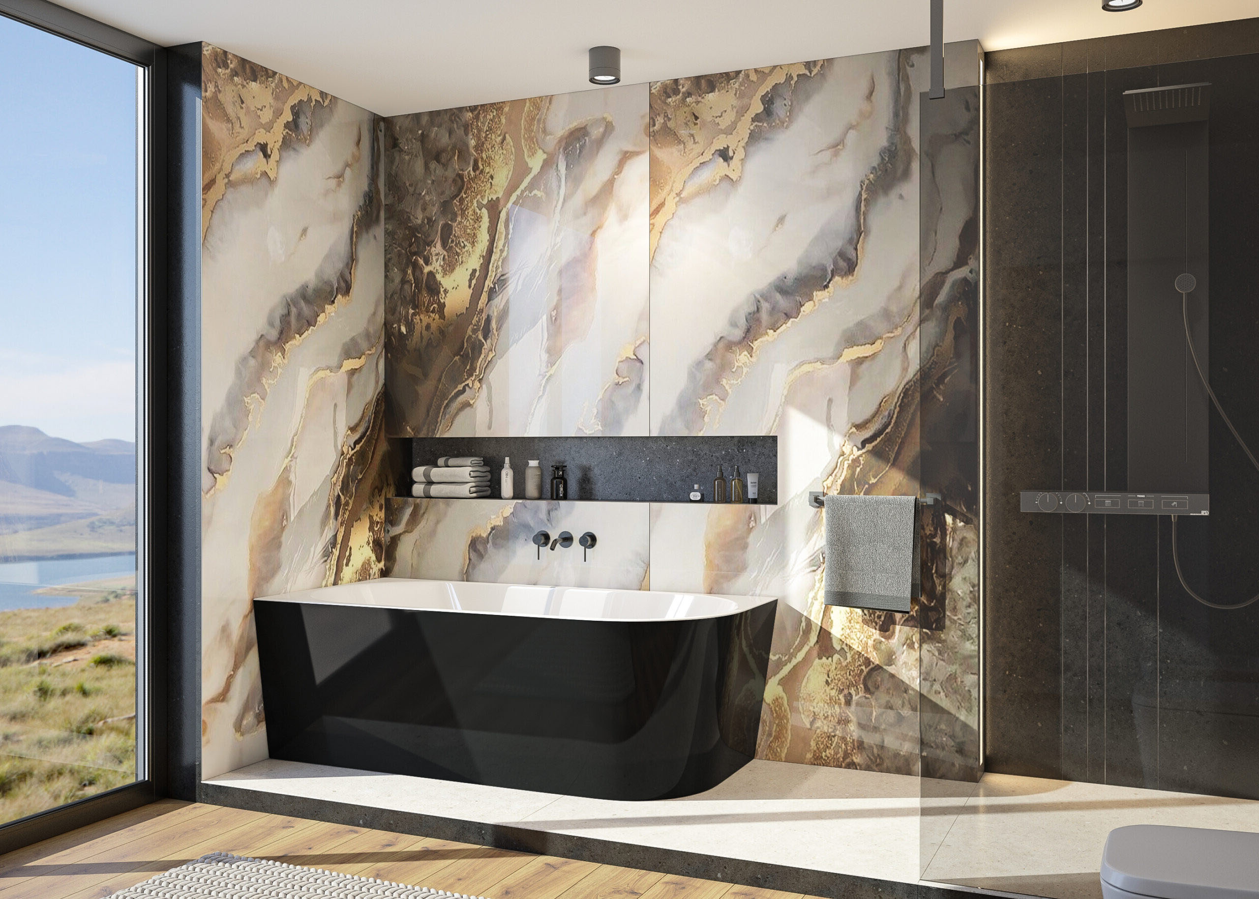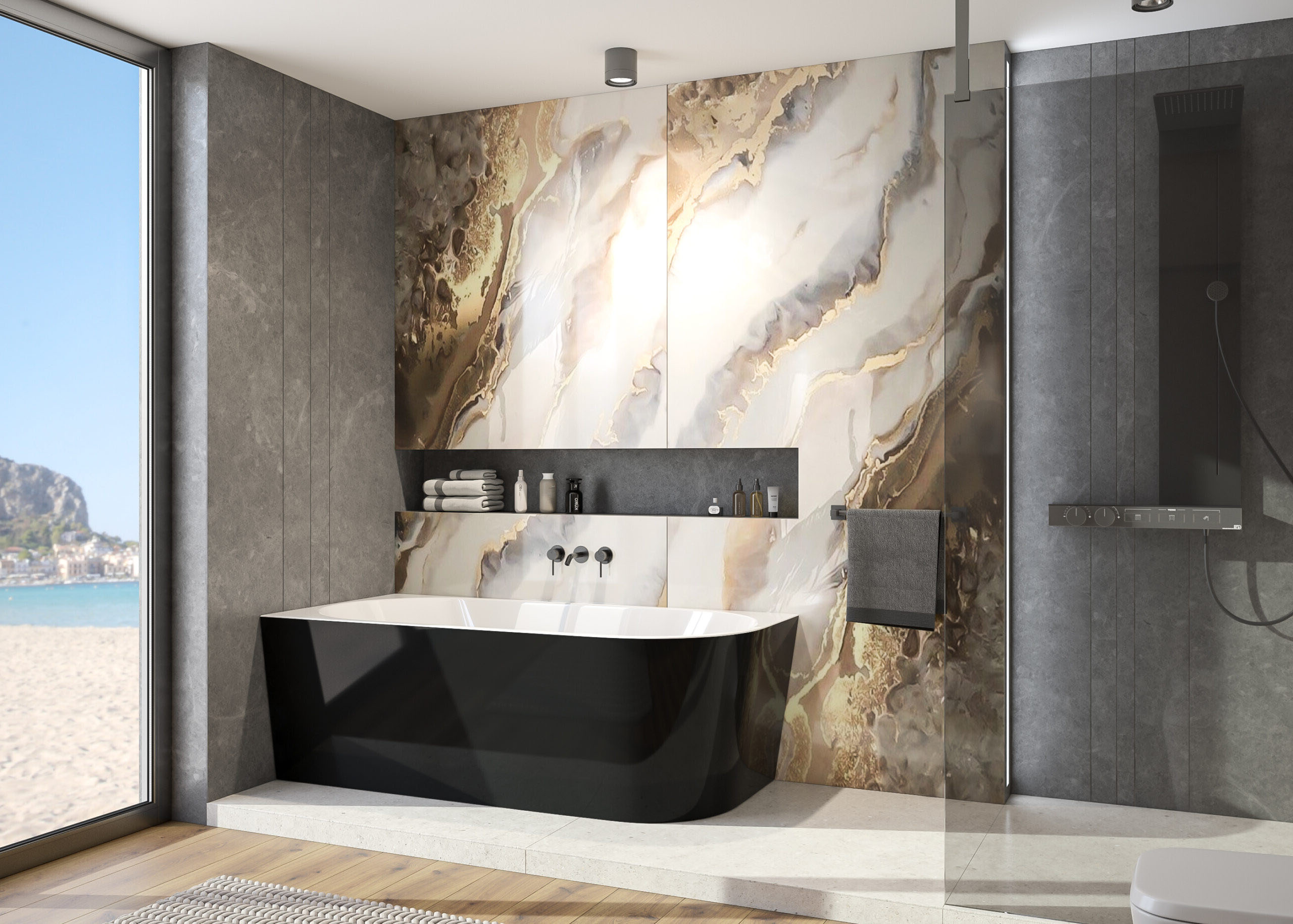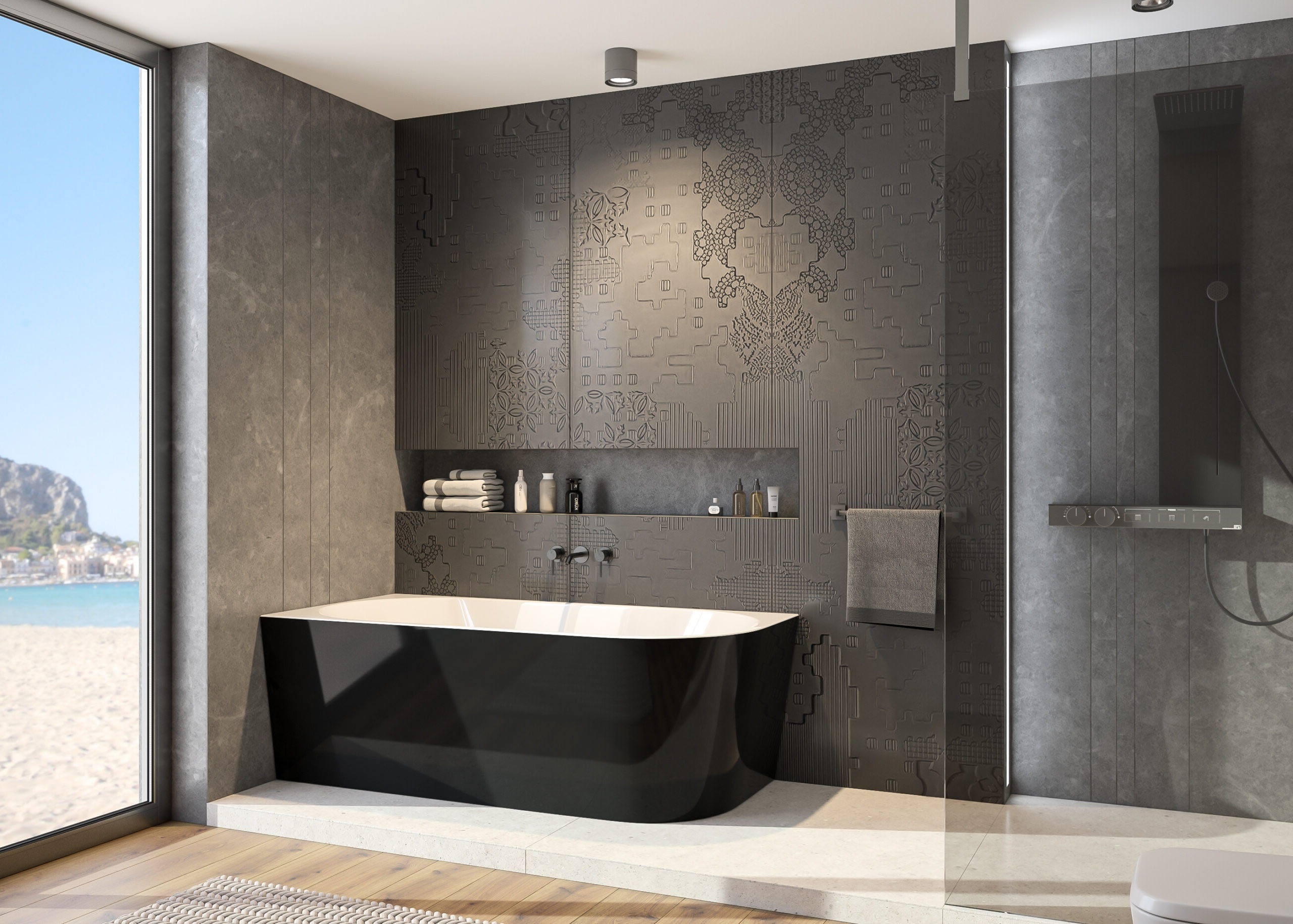 Vana s asymetrickým tvarem (obdélník se zaobleným rohem), která může být umístěna i ve volném prostoru koupelny, nejen v jejím rohu. Obdélníkový tvar vany na jedné straně se zaobleným rohem ušetří vnější prostor bez omezení vnitřního pohodlí.