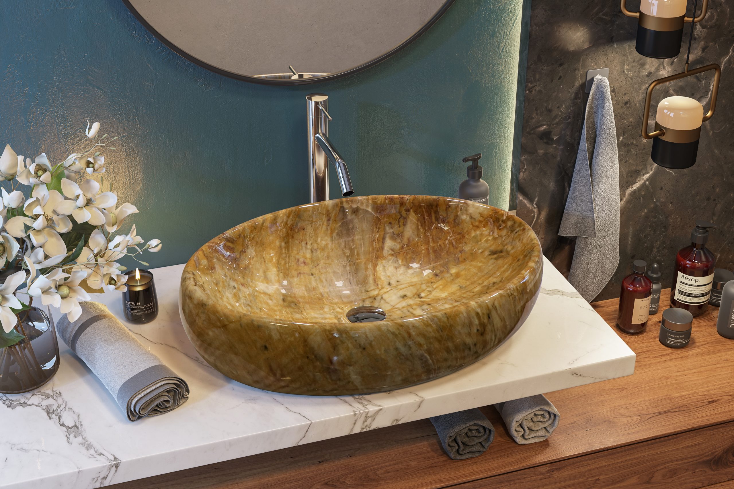 Oválné keramické umyvadlo bez otvoru pro baterii, bez přepadu.