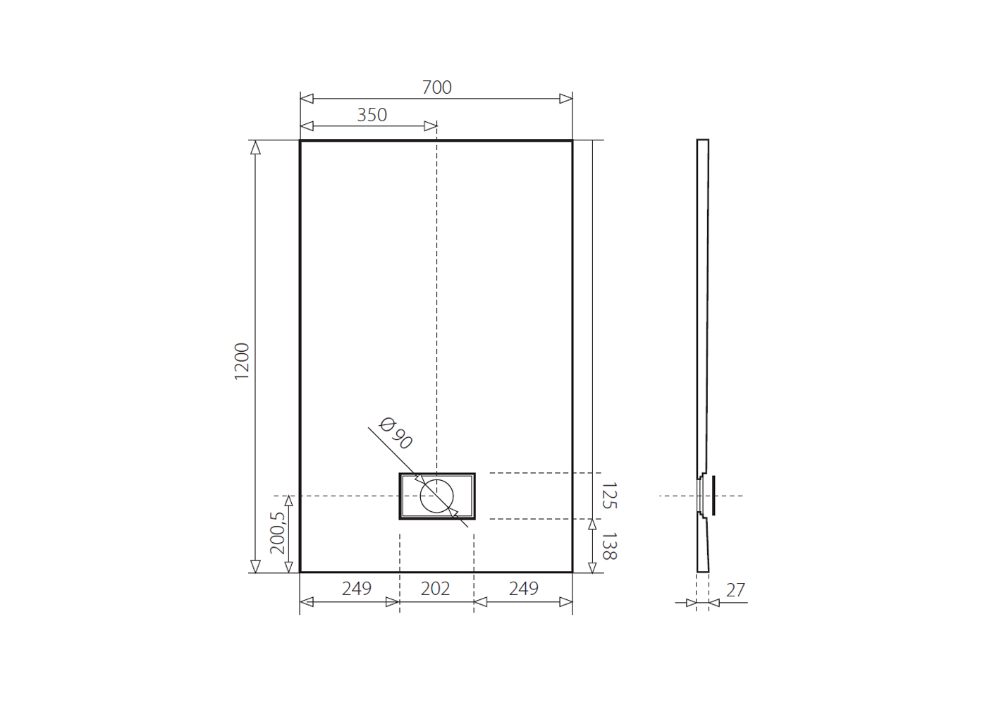 Sprchová vanička z tvrzeného polymeru