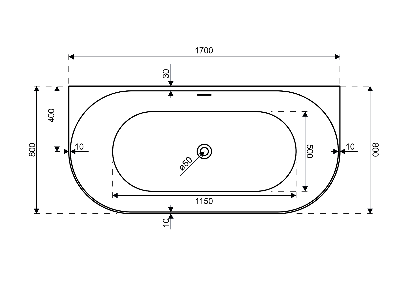 | Tloušťka okraje vany (mm) | |