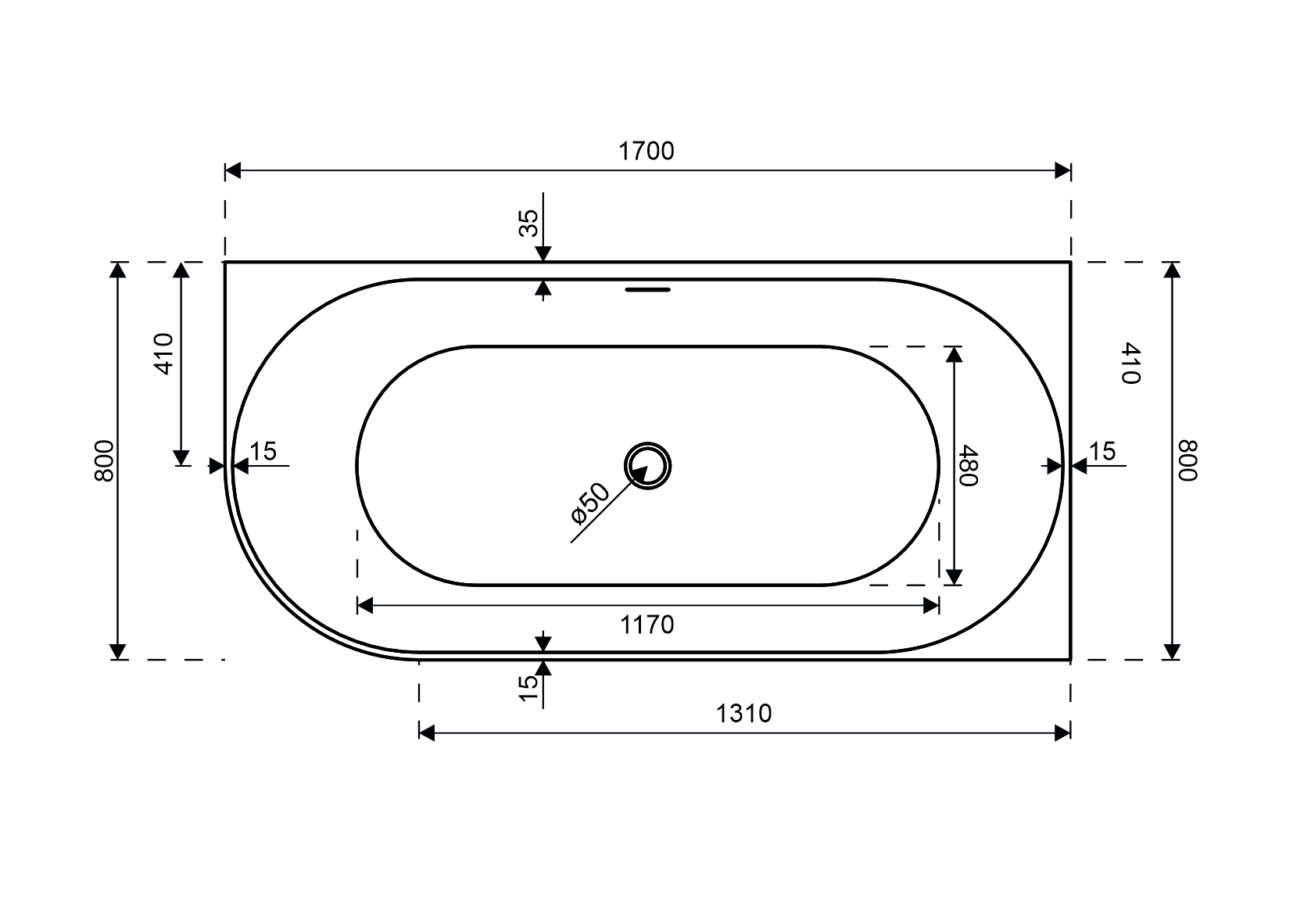 | Tloušťka okraje vany (mm) | |