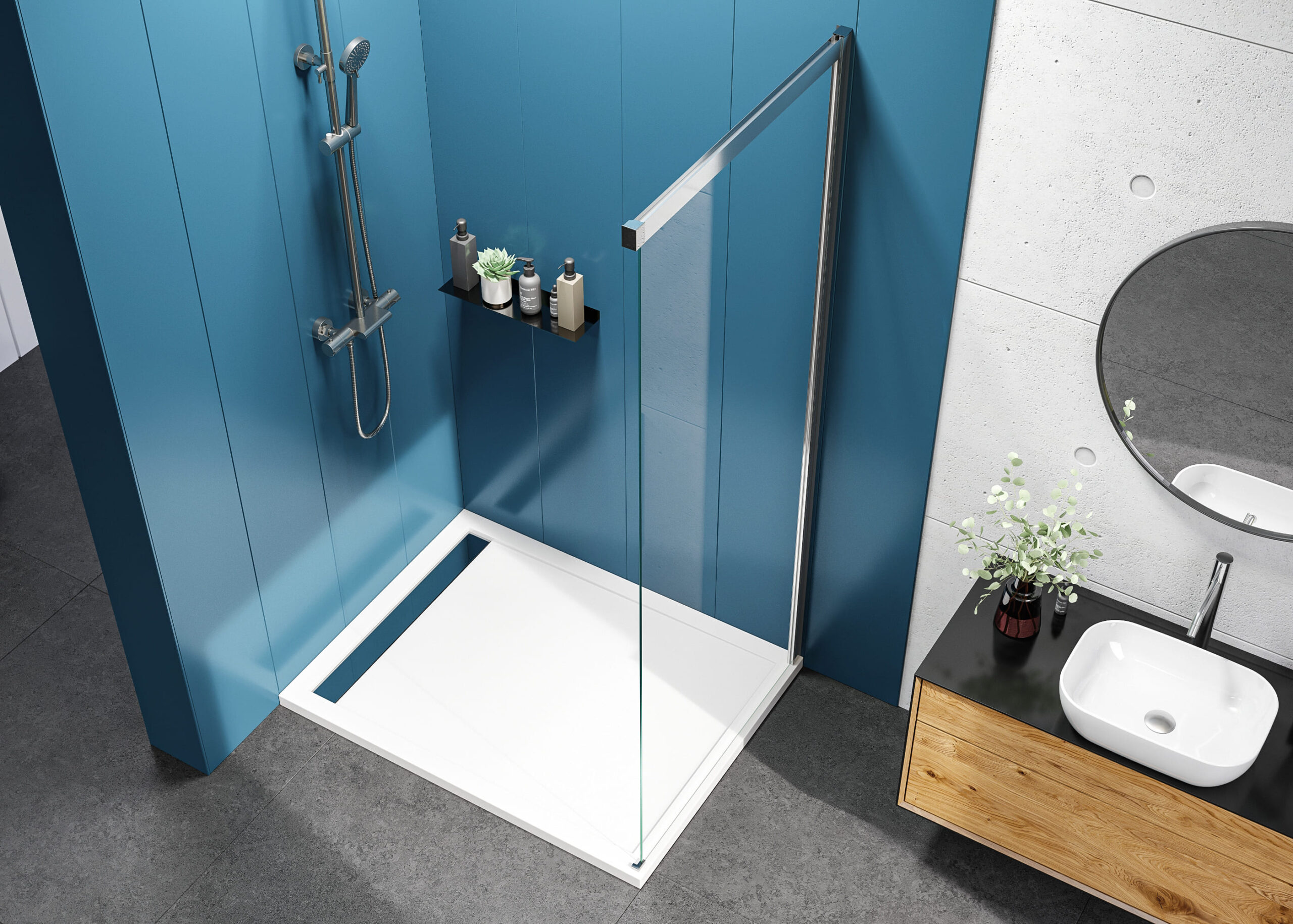 Pevný panel WELLNESS F1 je dodáván pouze v kombinaci s posuvnými dveřmi WELLNESS B2.